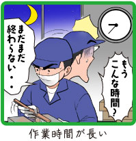 長時間の姿勢負担 かがみ込んでの作業や同じ姿勢が続くことで、腰痛や腱鞘炎といった慢性的な身体トラブルにつながることも。